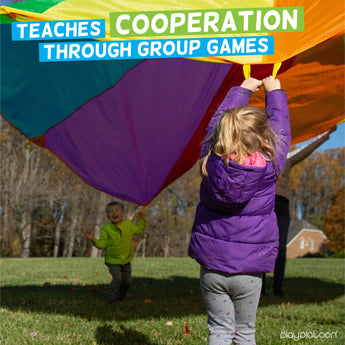 Play parachutes build teamwork and cooperation, increase upper body strength, enhance motor skills and coordination, all while being a fun and exciting game.
