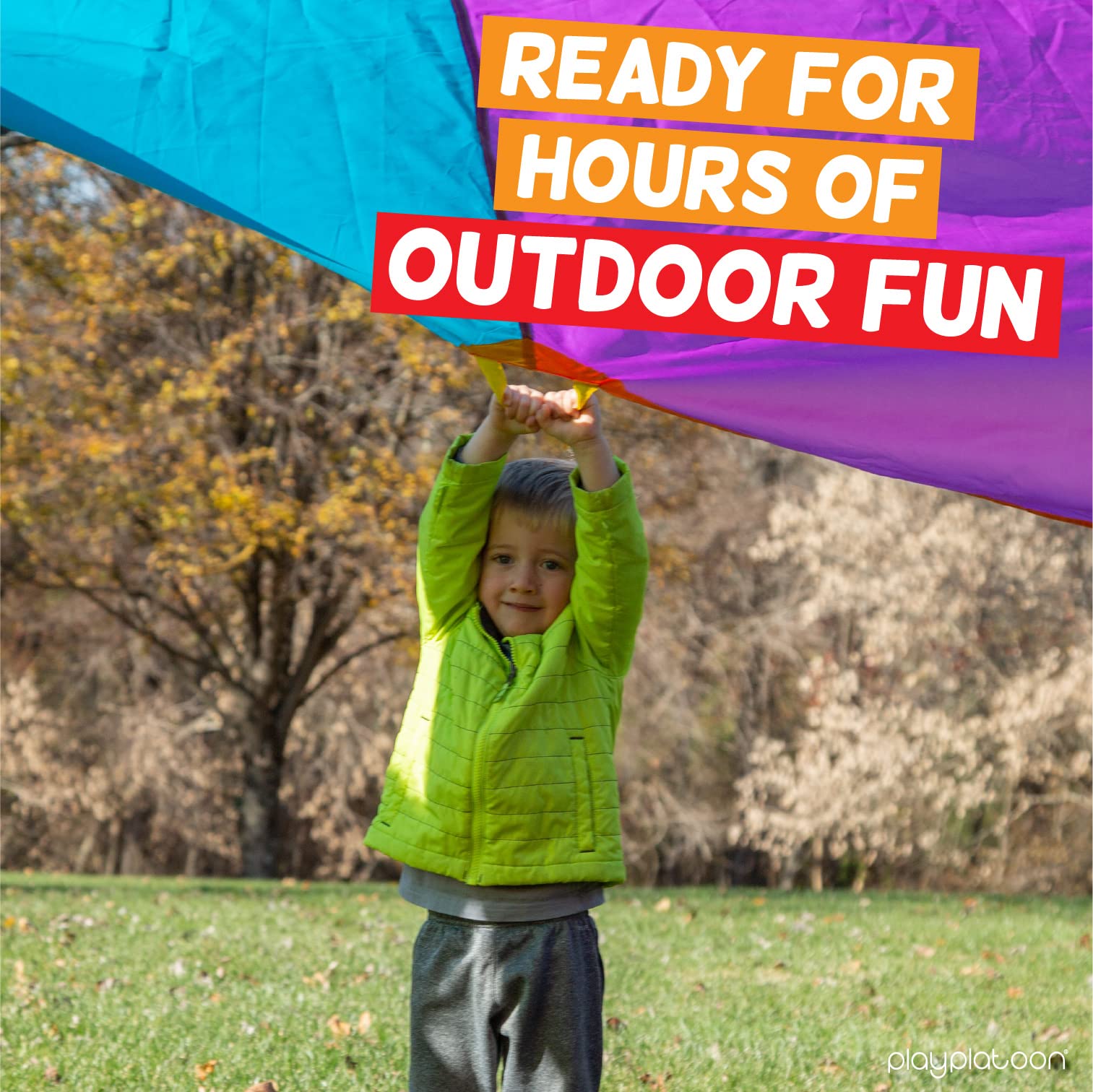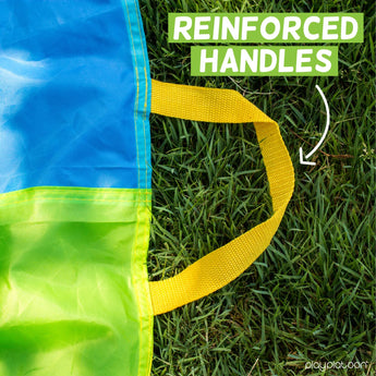 Unlike other parachutes for kids, the Play Platoon Play Parachute features strong reinforced handles designed to withstand heavy use and stay attached. We know that kids play rough, but this durable parachute is ready.
